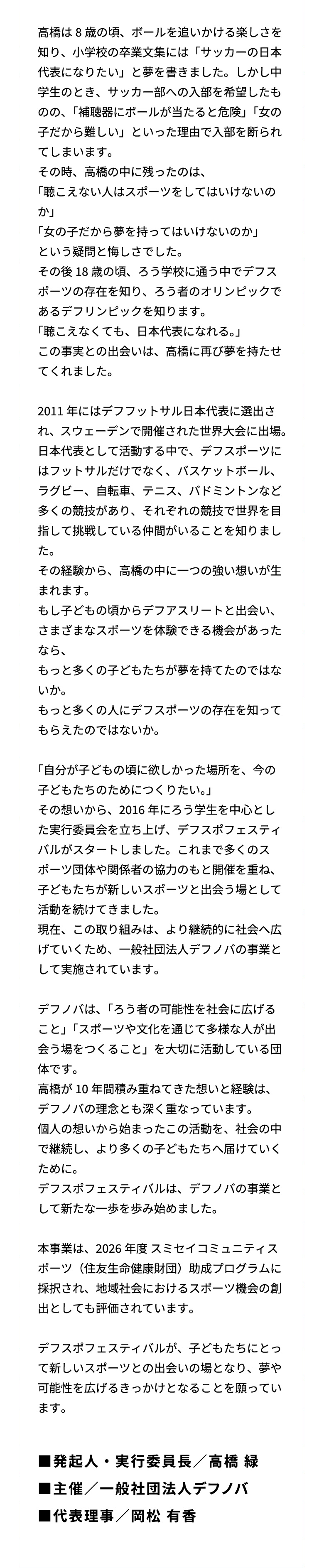 【ご寄付の使い道】 デフノバハウス事業費、広告宣伝費、デフノバ未来留学などイベント費 【税制優遇・控除について】 確定申告の際には領収書が必要となります。ご希望の方には、寄付金受領証(領収書)を発行いたします。 【お問い合わせ】 ご不明点やご質問がありましたら、お気軽にお問い合わせください。 お電話:06−7172−6791(平日 12時~19時30分) メール:house@deafnoba.com
